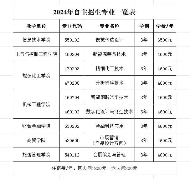 二、2024年自主招生专业一览表